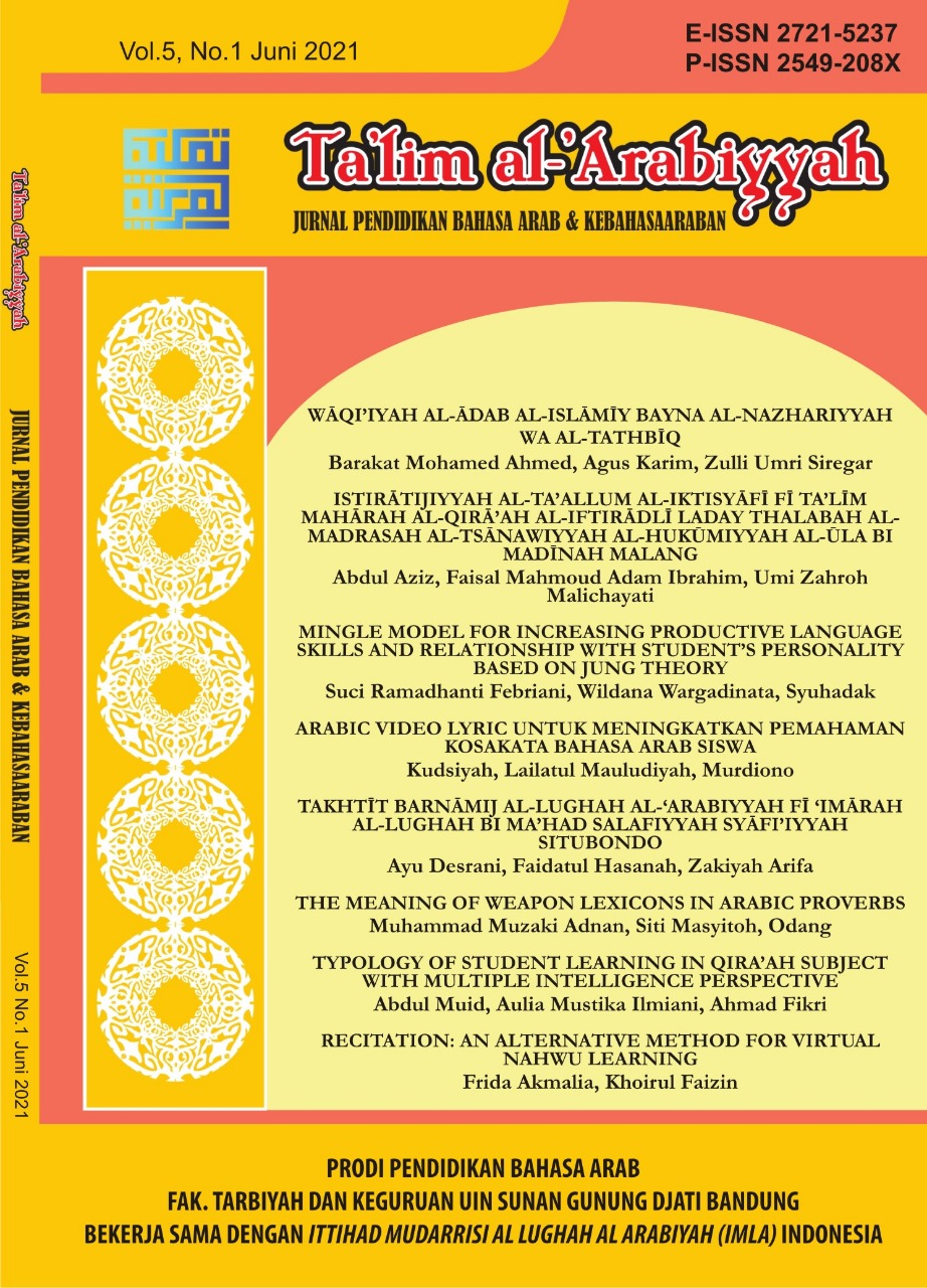Vol. 5 No. 1 (2021): Ta'lim al-'Arabiyyah: Jurnal Pendidikan Bahasa Arab dan Kebahasaaraban