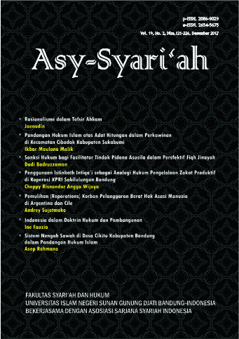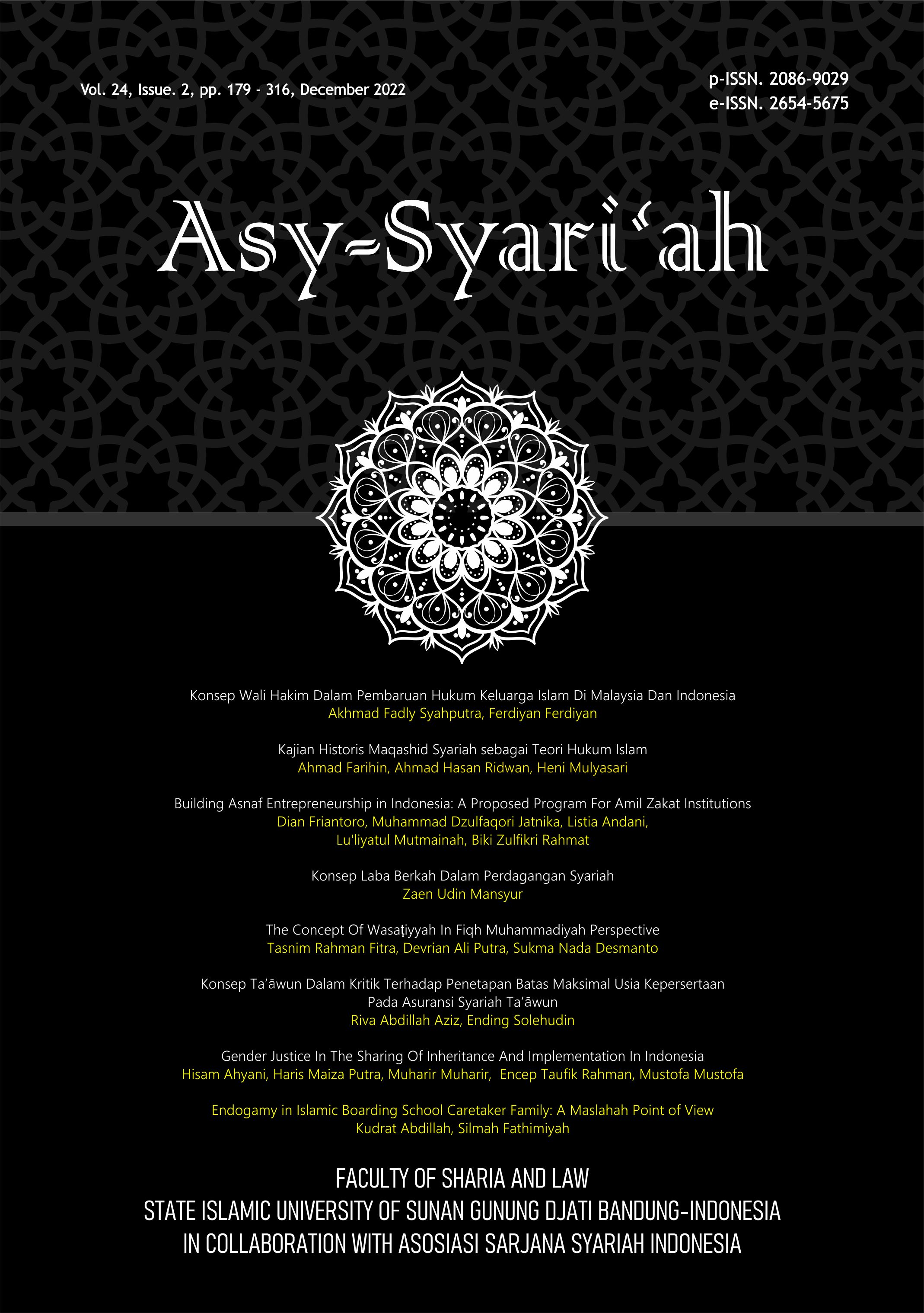 Editor in Chief: Prof. Dr. H. Ah. Fathonih, M.Ag.This issue (Asy-Syari'ah Volume 25 Issue 2 of 2023) has been available online since 31st December 2023, for the regular issue of December 2023. All articles in this issue consist of 5 original research articles that were authored/co-authored by 9 authors from 4 countries (Indonesia, Turkey, Nigeria and Uganda)