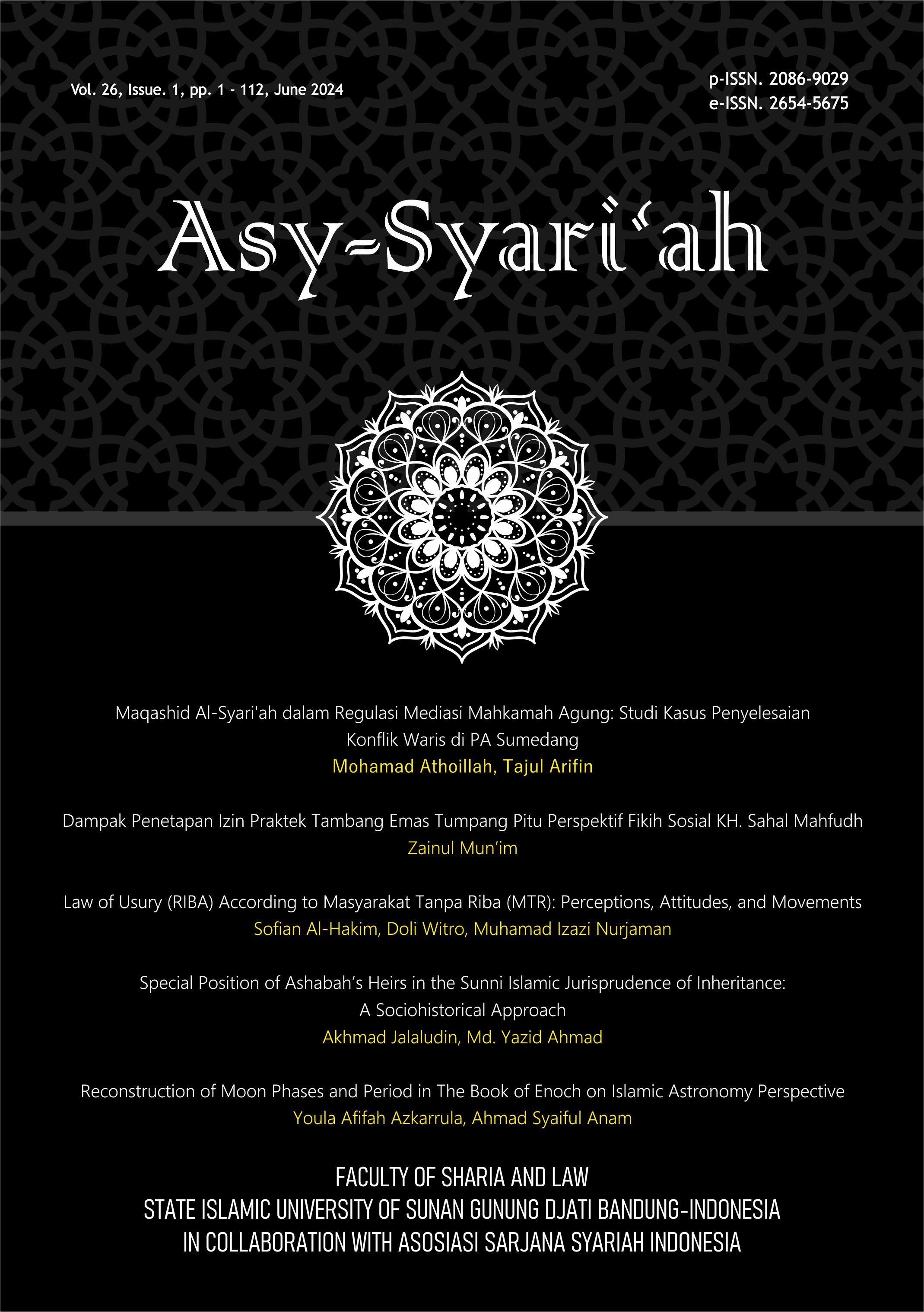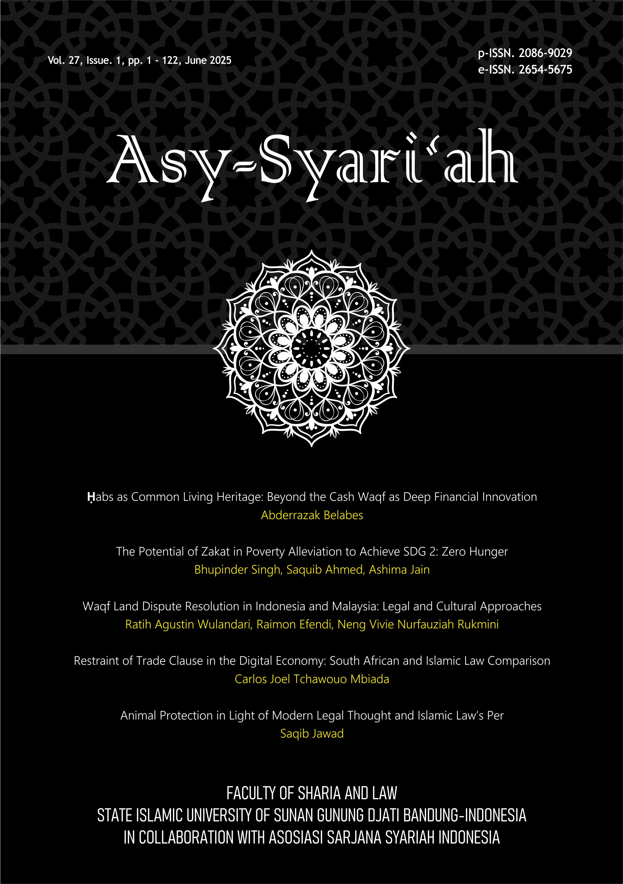 Editor in Chief: Prof. Dr. H. Ah. Fathonih, M.Ag.This issue (Asy-Syari'ah Volume 27 Issue 1 of 2025) has been available online since 31st June 2025, for the regular issue of June 2025. All articles in this issue consist of 5 original research articles that were authored/co-authored by 9 authors from 6 countries (India, Indonesia, Malaysia, Pakistan, Saudi Arabia, and South Africa)
