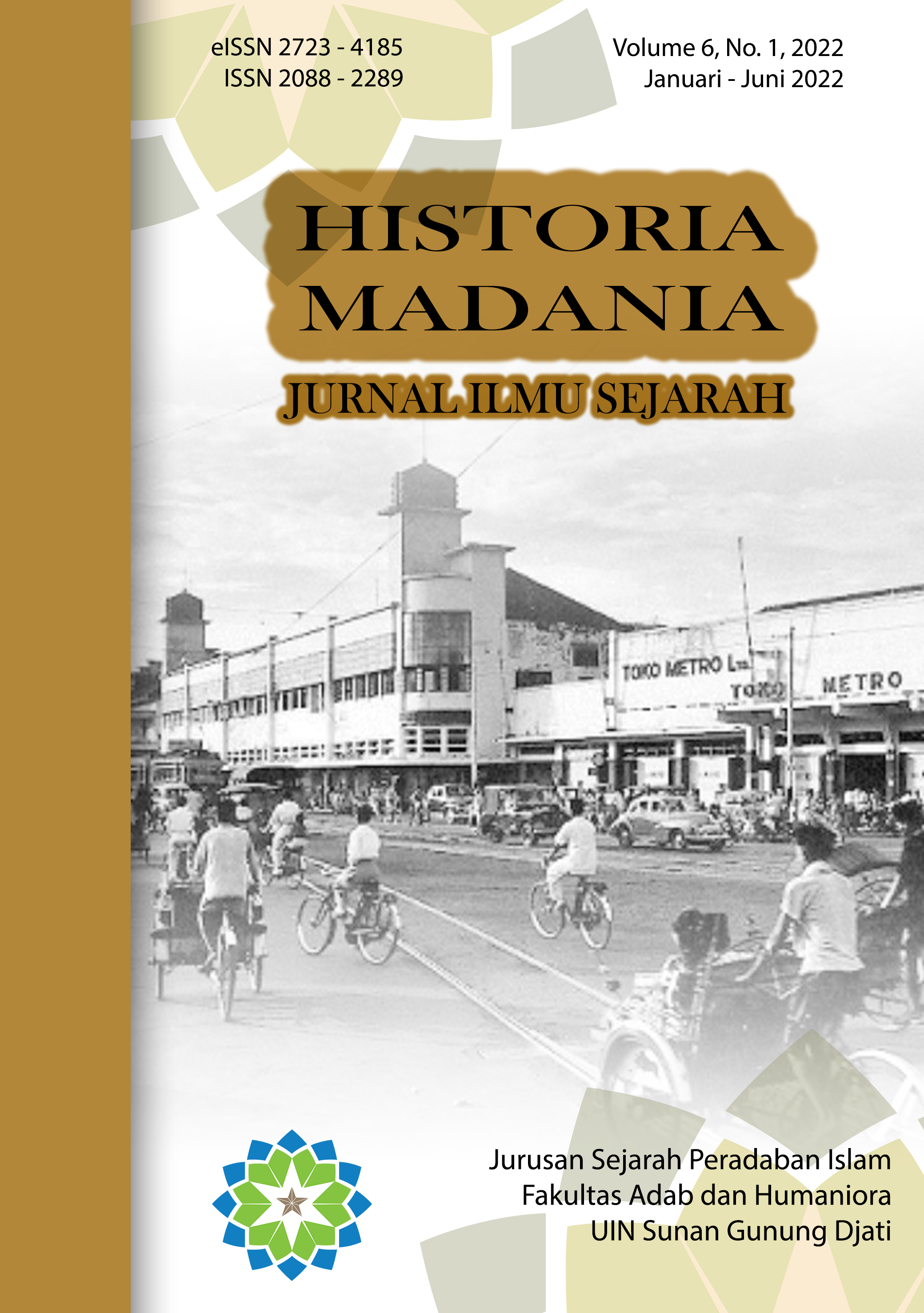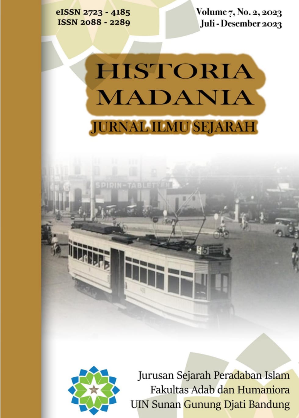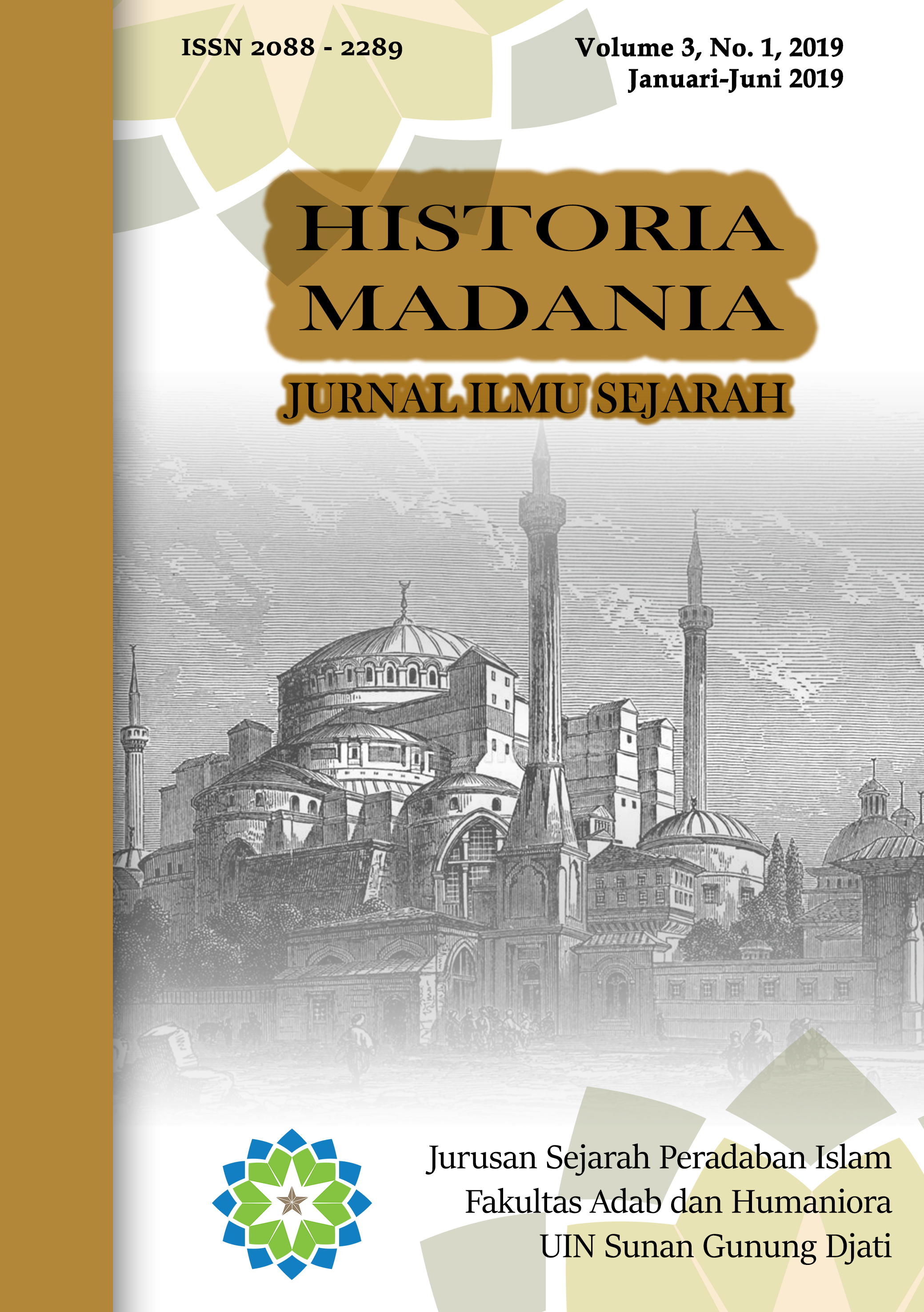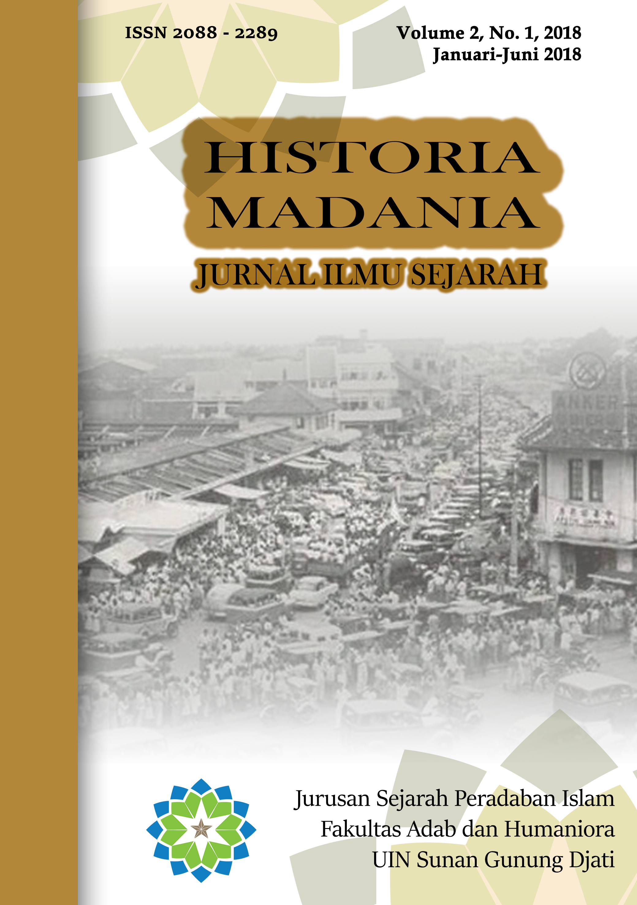 Vol. 2 No. 1 (2018)Historia Madania: Jurnal Ilmu Sejarah (ISSN: 2088-2289) adalah jurnal berkala ilmiah yang menerapkan proses peer-review. Pengelolaaan jurnal dilakukan oleh Prodi Sejarah Peradaban Islam Fakultas Adab dan Humaniora Universitas Islam Negeri Sunan Gunung Djati Bandung. Artikel yang dipublikasikan adalah artikel hasil penelitian dalam bahasa Indonesia, Inggris dan Arab yang berkaitan dengan peradaban, Budaya, dan Sosial Islam terkhusus sejarah Islam.