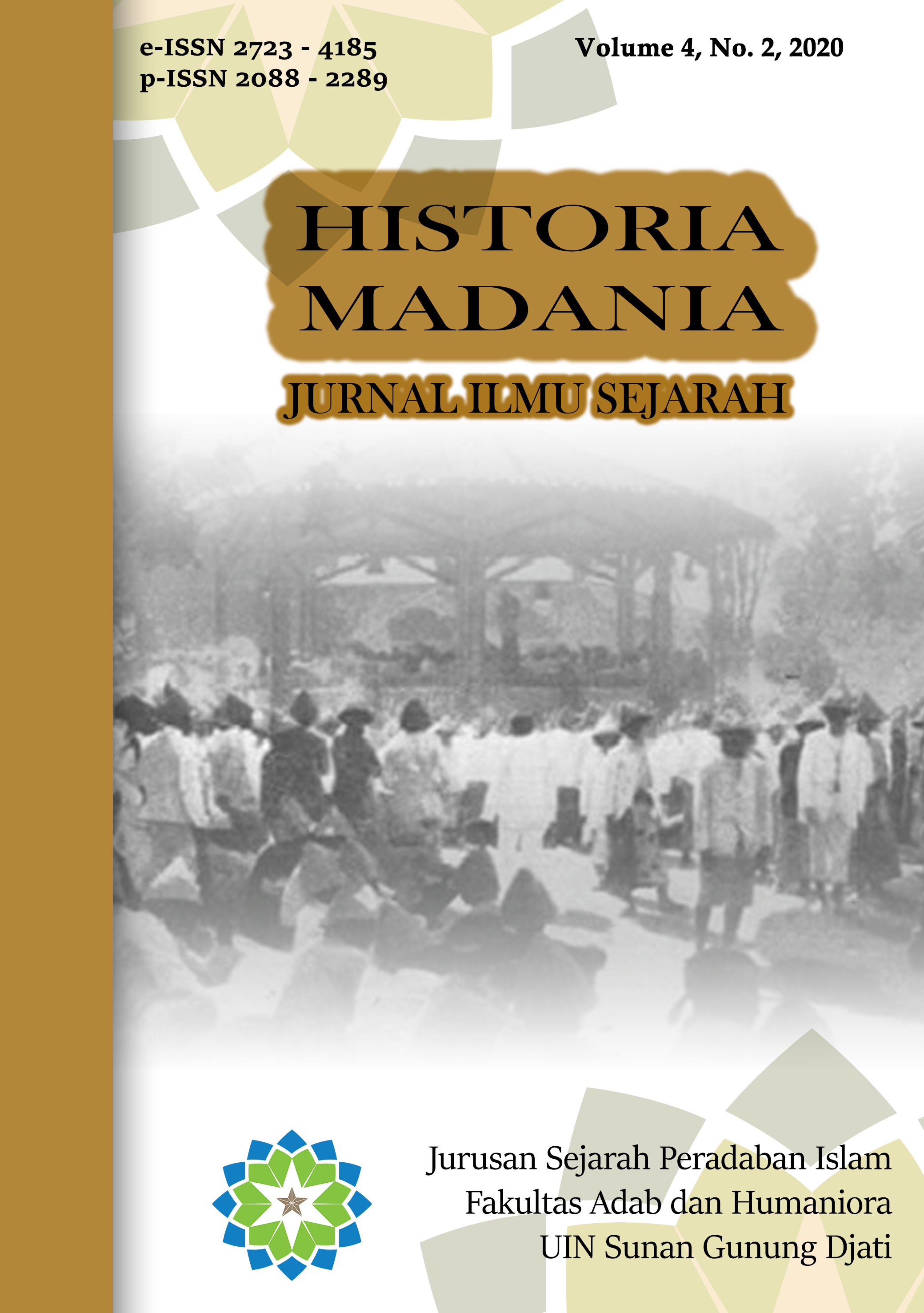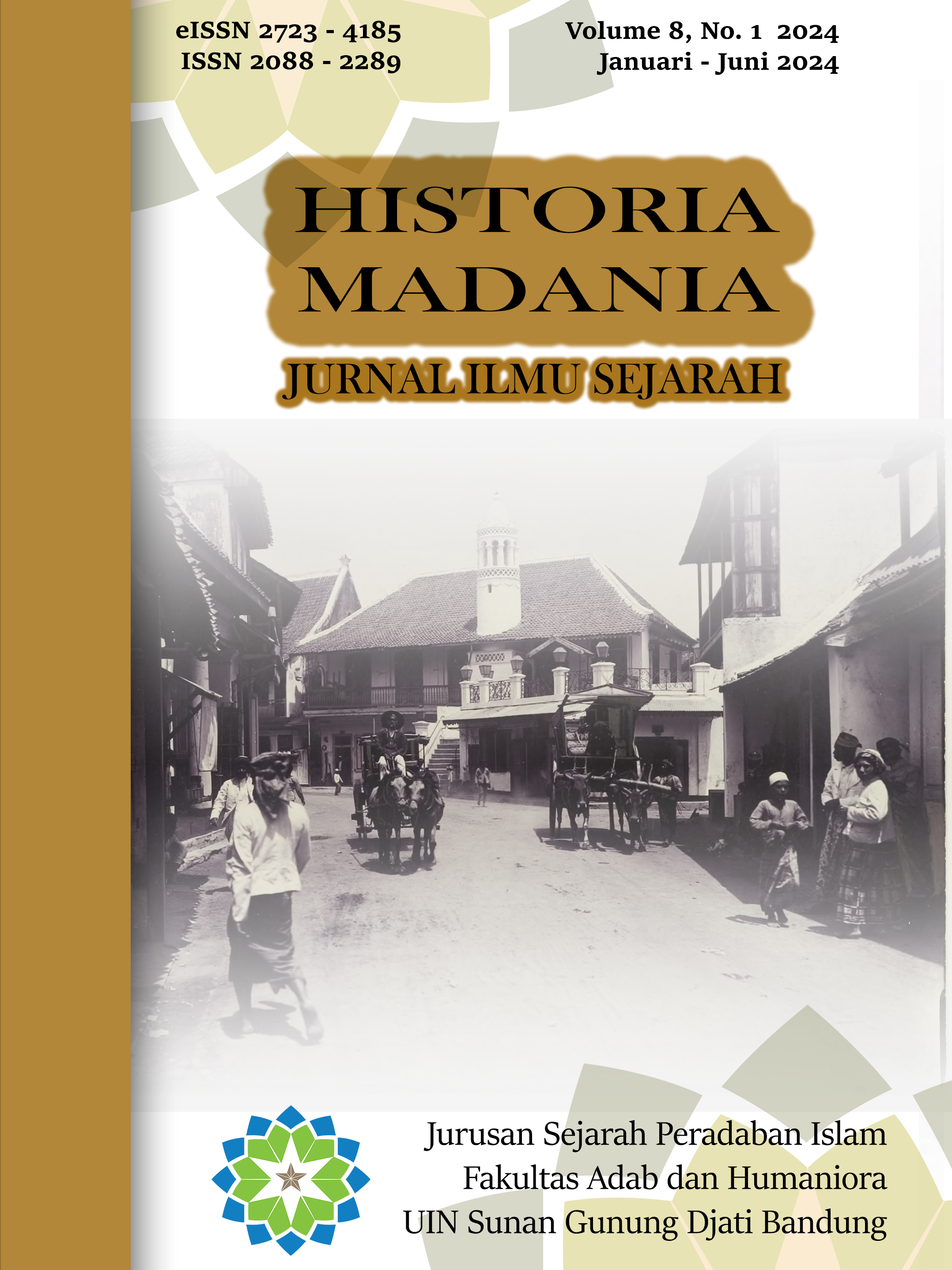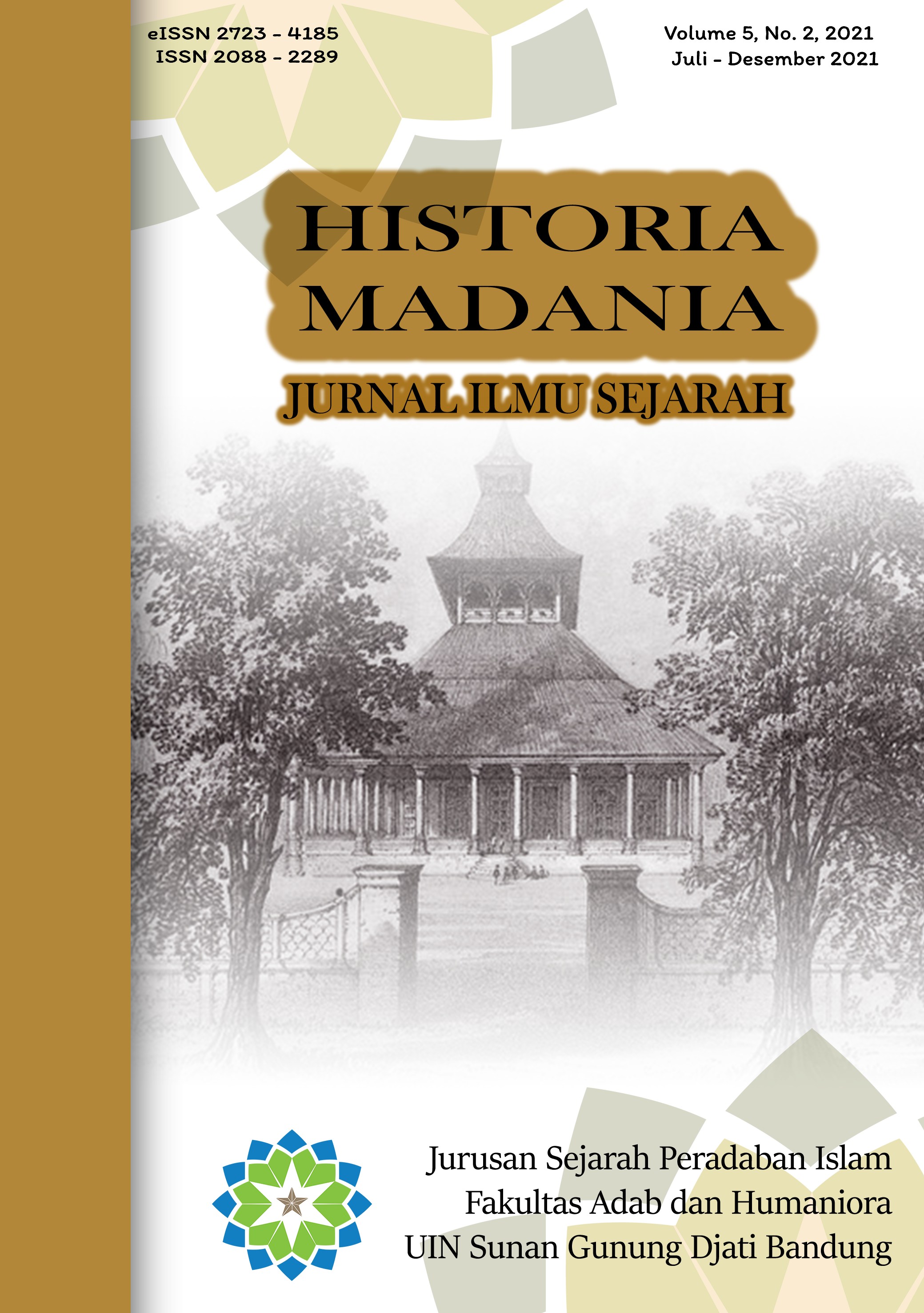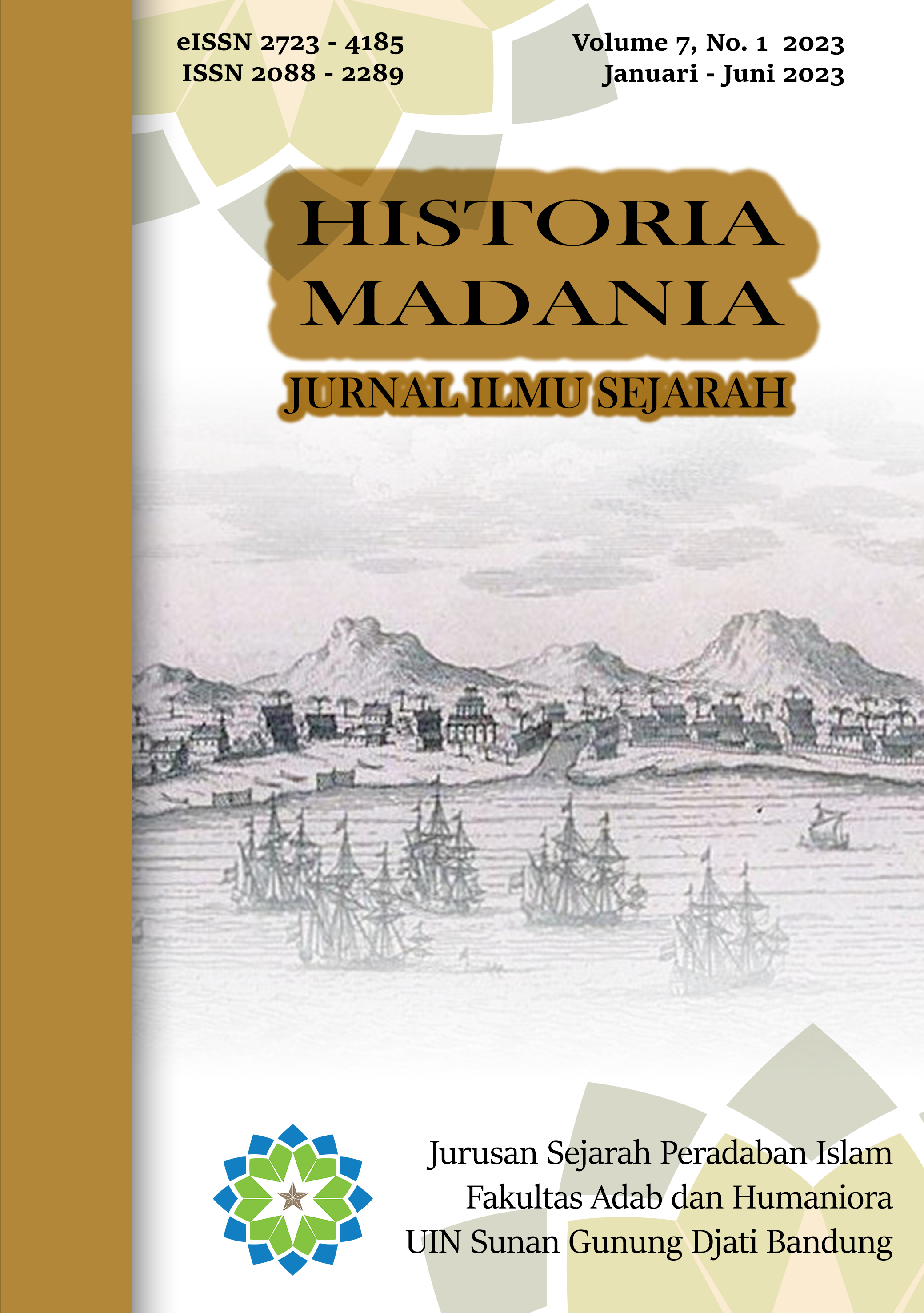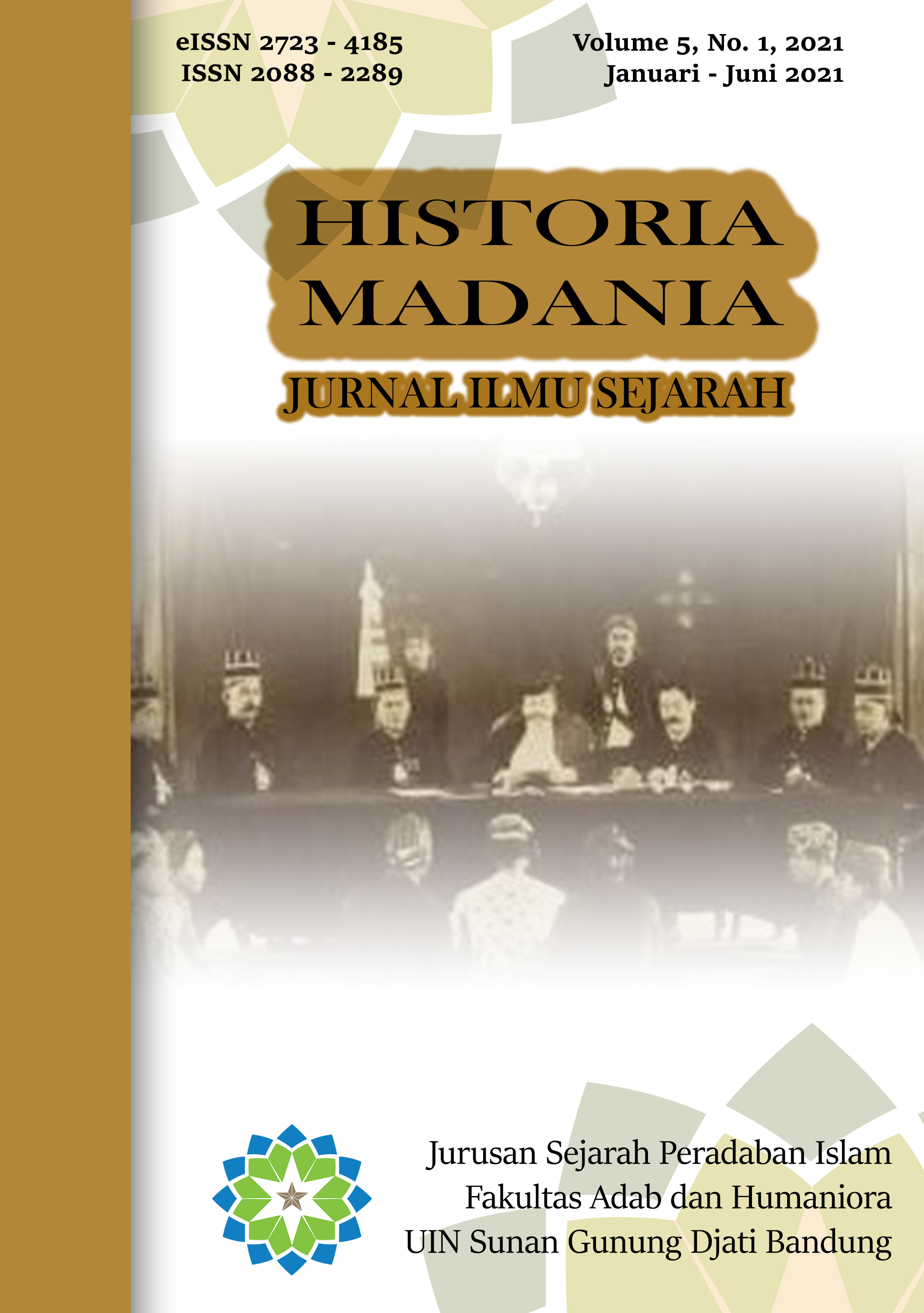 Vol. 2 No. 1 (2018)Historia Madania: Jurnal Ilmu Sejarah (ISSN: 2088-2289) adalah jurnal berkala ilmiah yang menerapkan proses peer-review. Pengelolaaan jurnal dilakukan oleh Prodi Sejarah Peradaban Islam Fakultas Adab dan Humaniora Universitas Islam Negeri Sunan Gunung Djati Bandung. Artikel yang dipublikasikan adalah artikel hasil penelitian dalam bahasa Indonesia, Inggris dan Arab yang berkaitan dengan peradaban, Budaya, dan Sosial Islam terkhusus sejarah Islam.