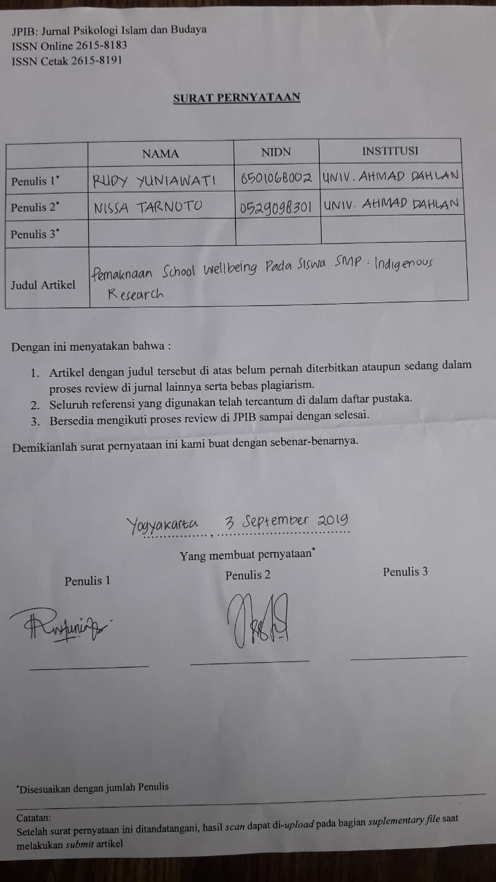 Hidayah, N. & Yuniawati, R. (2014). Evaluasi kesejahteraan psikologis siswa di sekolah (Laporan penelitian). Universitas Ahmad Dahlan Yogyakarta.