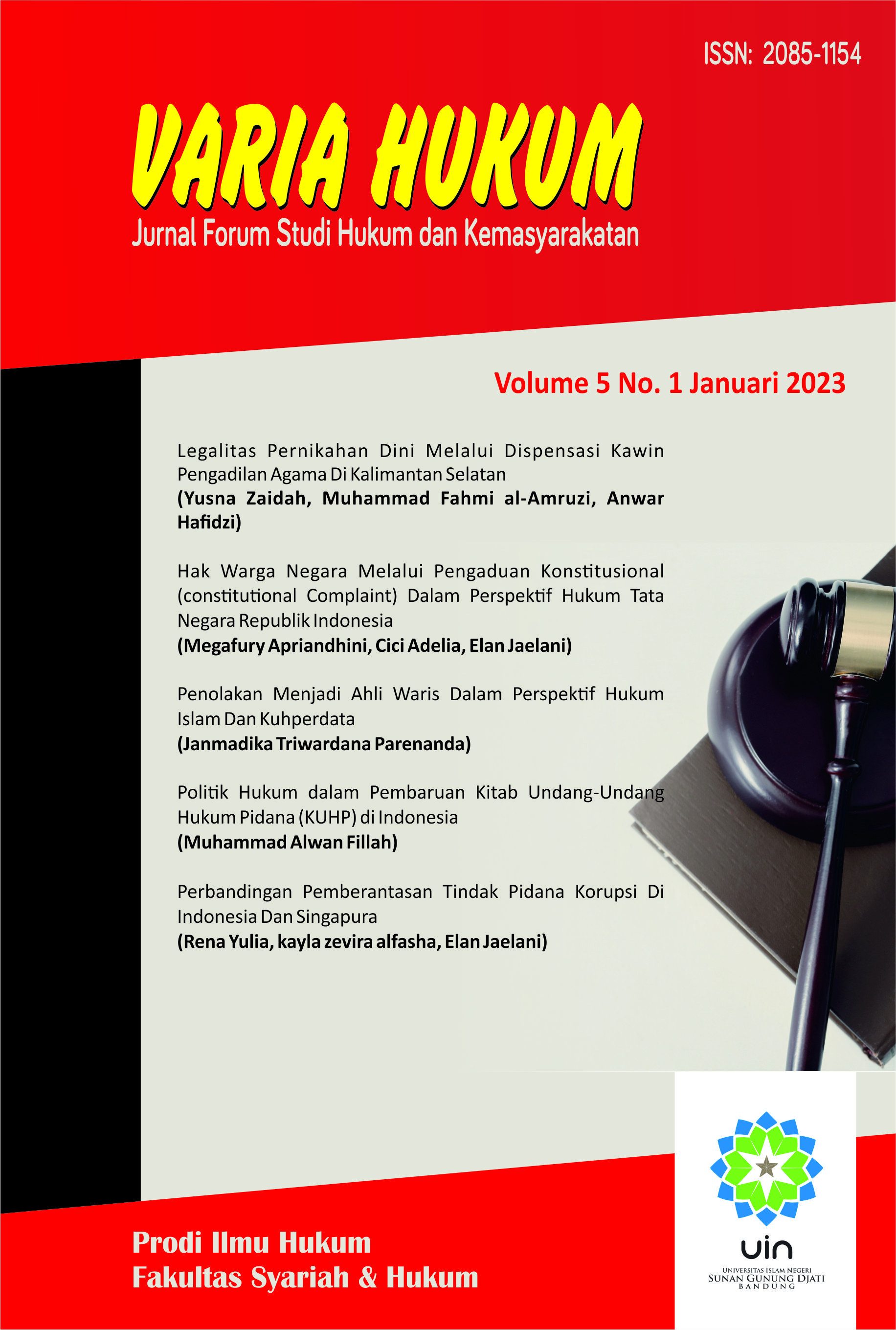 Publisher: Law Studies Program, Faculty of Sharia and Law, UIN Sunan Gunung Djati Bandung, Indonesia